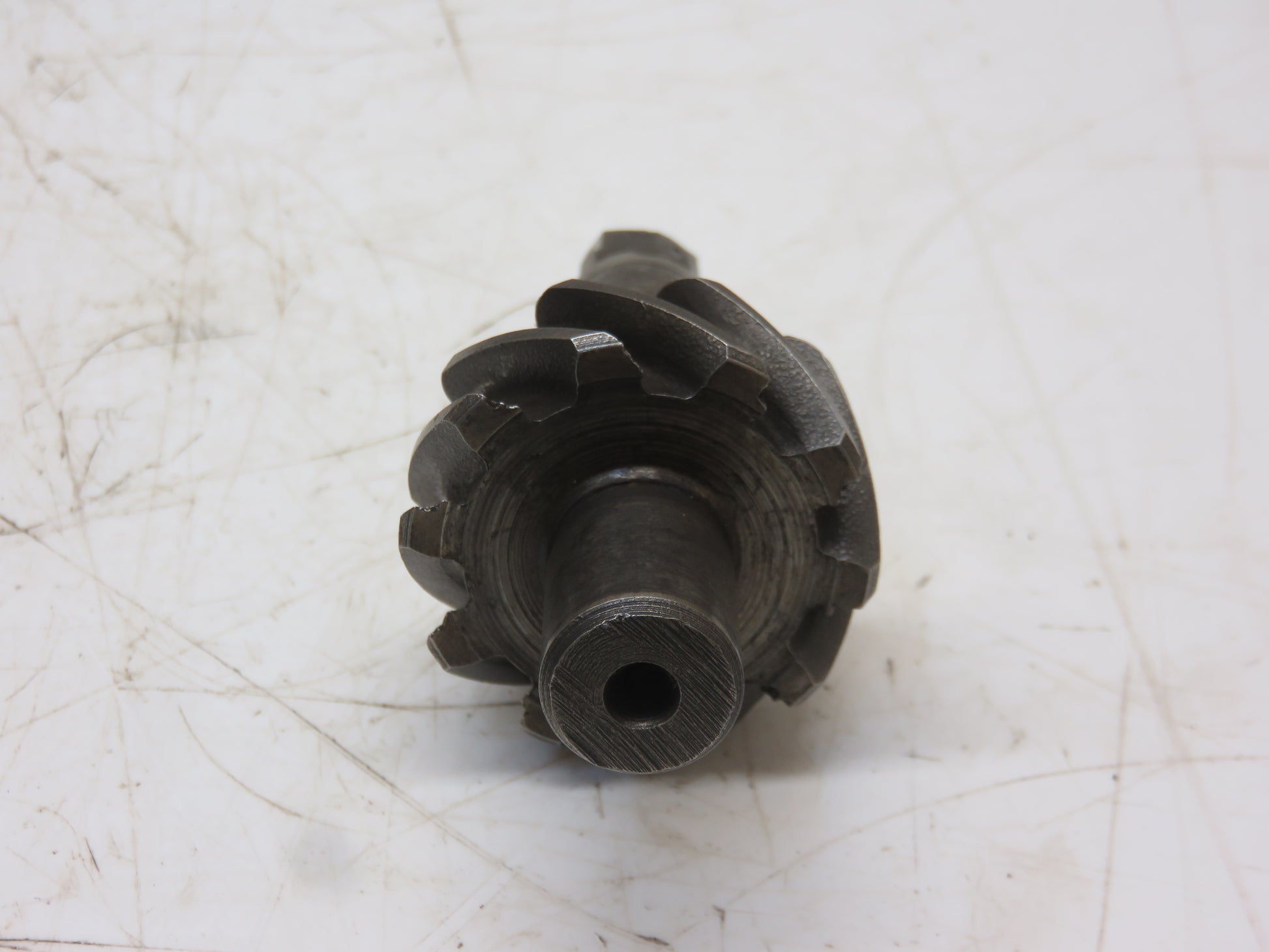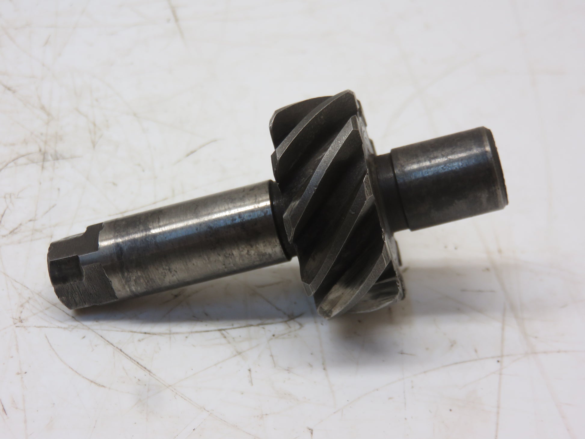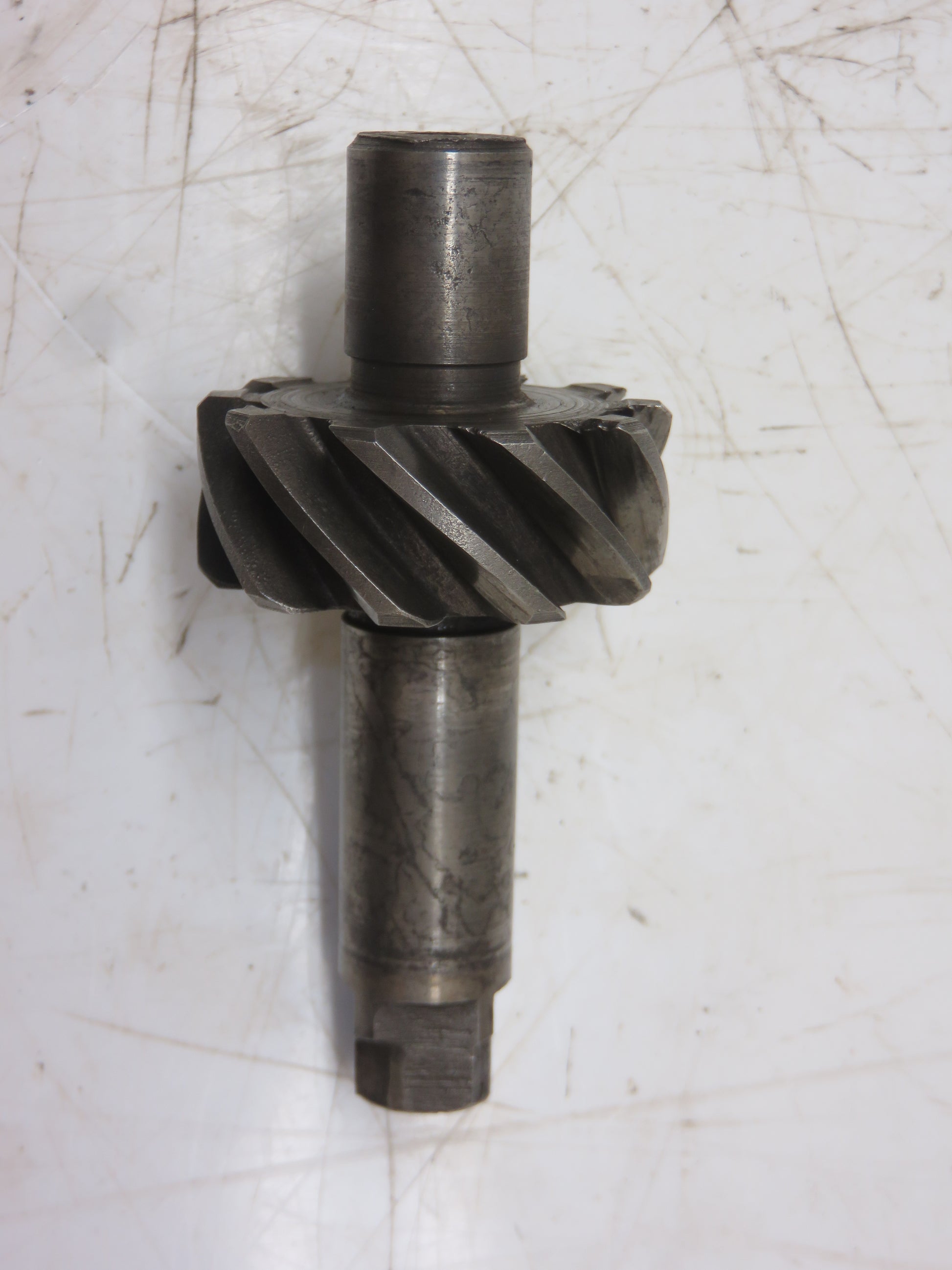 John Deere Engine Oil Pump Drive Gear And Shaft. It Does Not Have Any Chipped, Cracked Or Broken Teeth. It Is Worn On The Square End. It Is Part Number B252R. For A Serial Number 424025-442150, AR Serial Number 251486-253520, AO Serial Number 251486-253520, B Up To Serial Number 40781, BR Up To Serial Number 327459, BO Up To Serial Number 327459